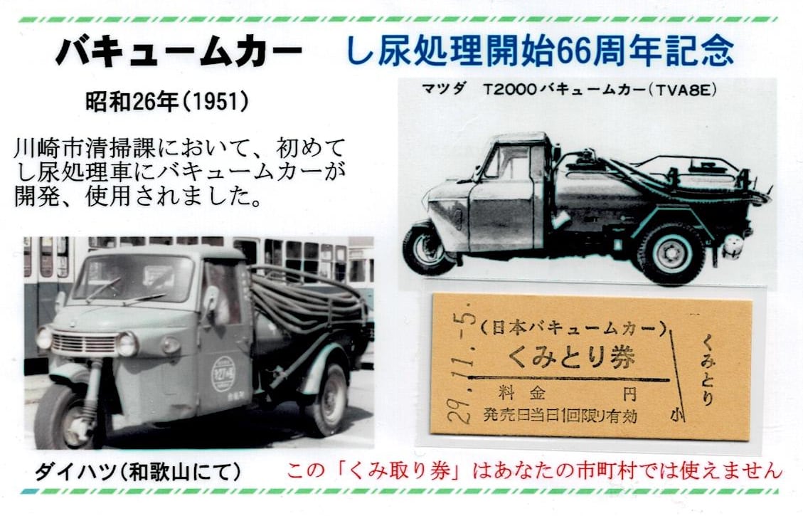 バキュームカーし尿処理開始66周年記念台紙 オリジナル硬券付きセット